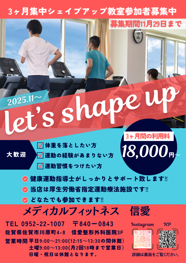 メディカルフィットネス信愛 3ヶ月集中シェイプアップコース会員募集中‼